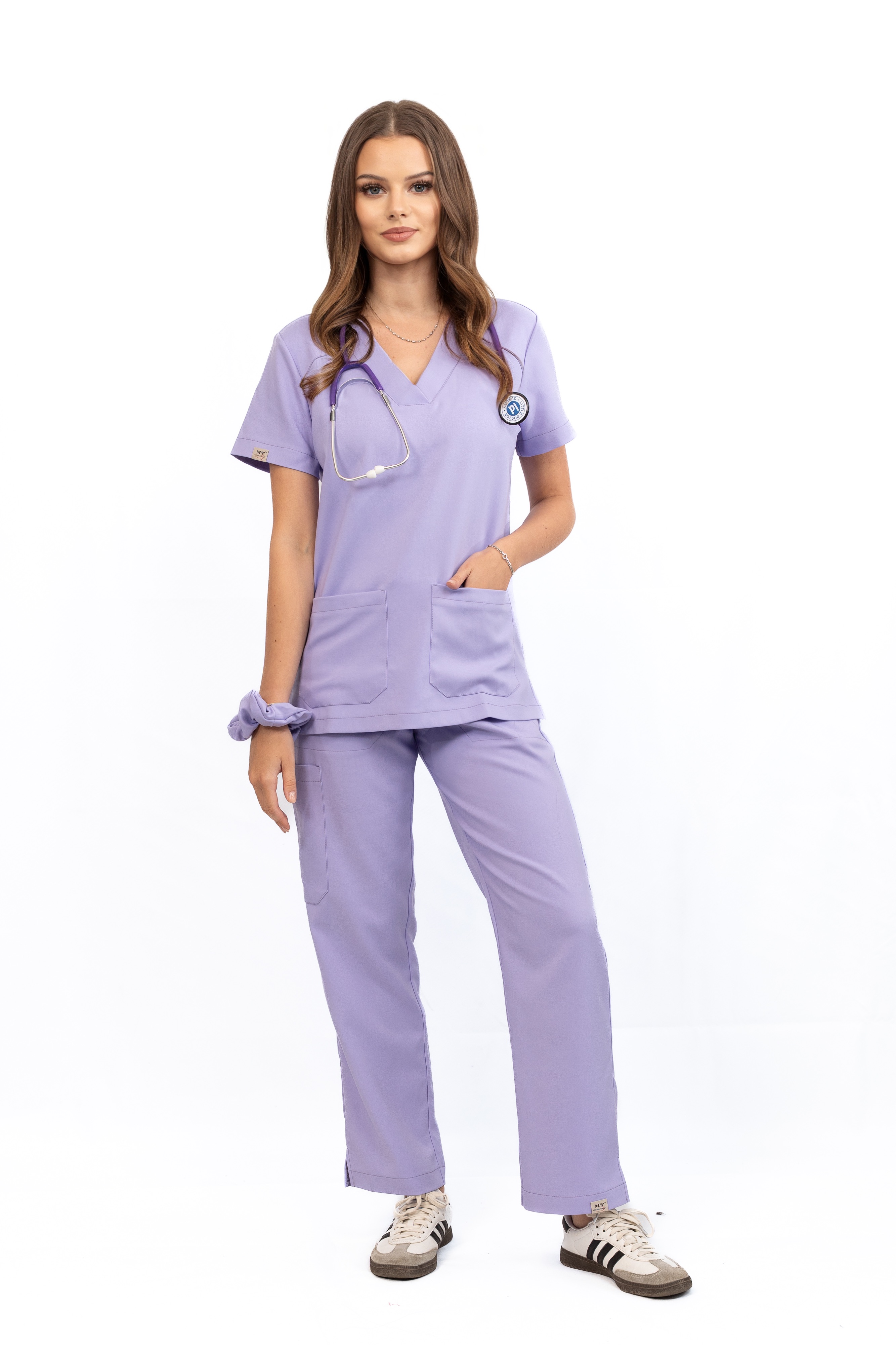 Dwie pojemne kieszenie naszywane z przodu pozwalają na wygodne przechowywanie niezbędnych akcesoriów – od długopisu po telefon czy stetoskop.