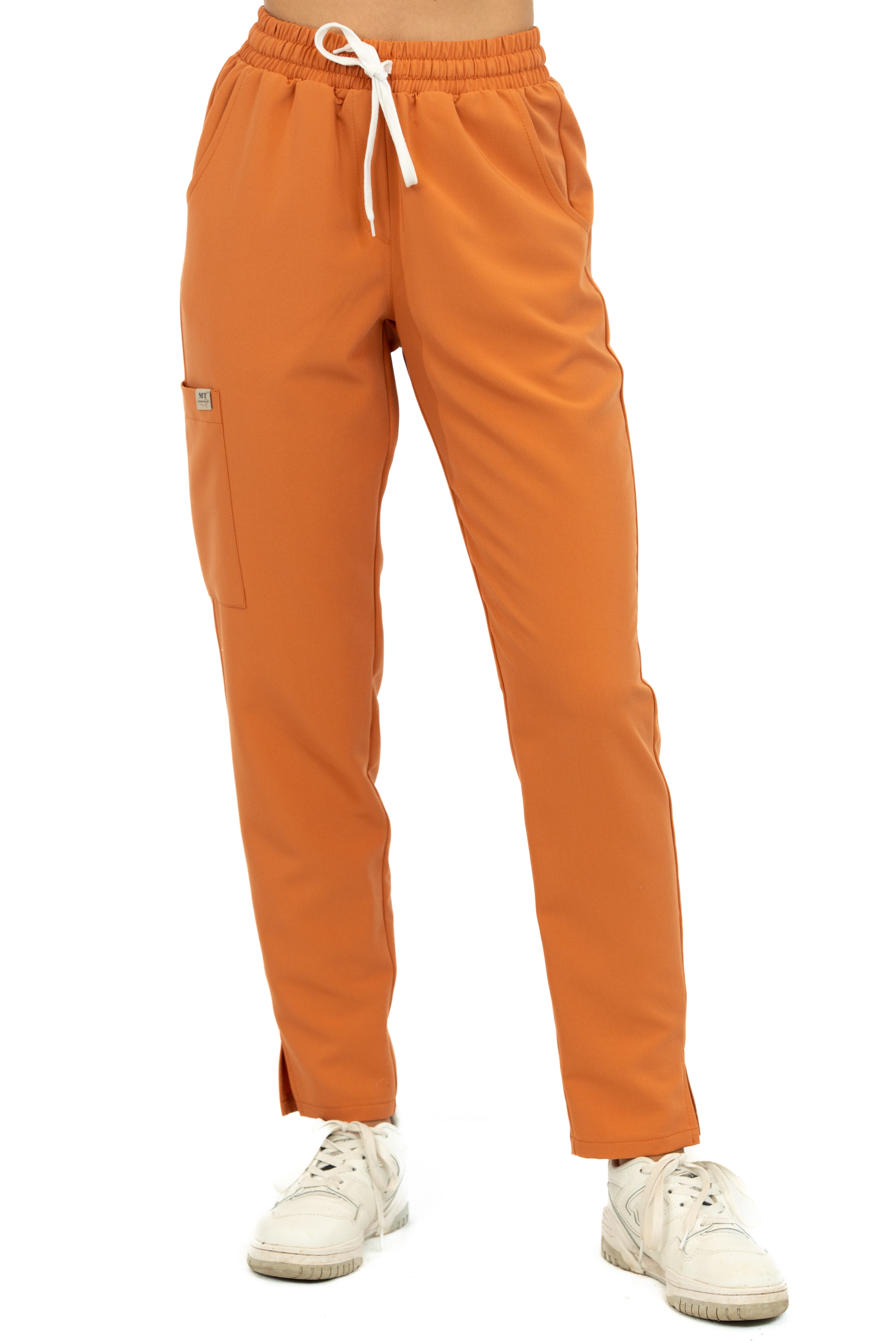 GOLDEN CARAMEL to słoneczny, karmelowy odcień, który dodaje energii i profesjonalnego szyku. Zwężane nogawki i nowoczesne wykończenie podkreślają elegancję.