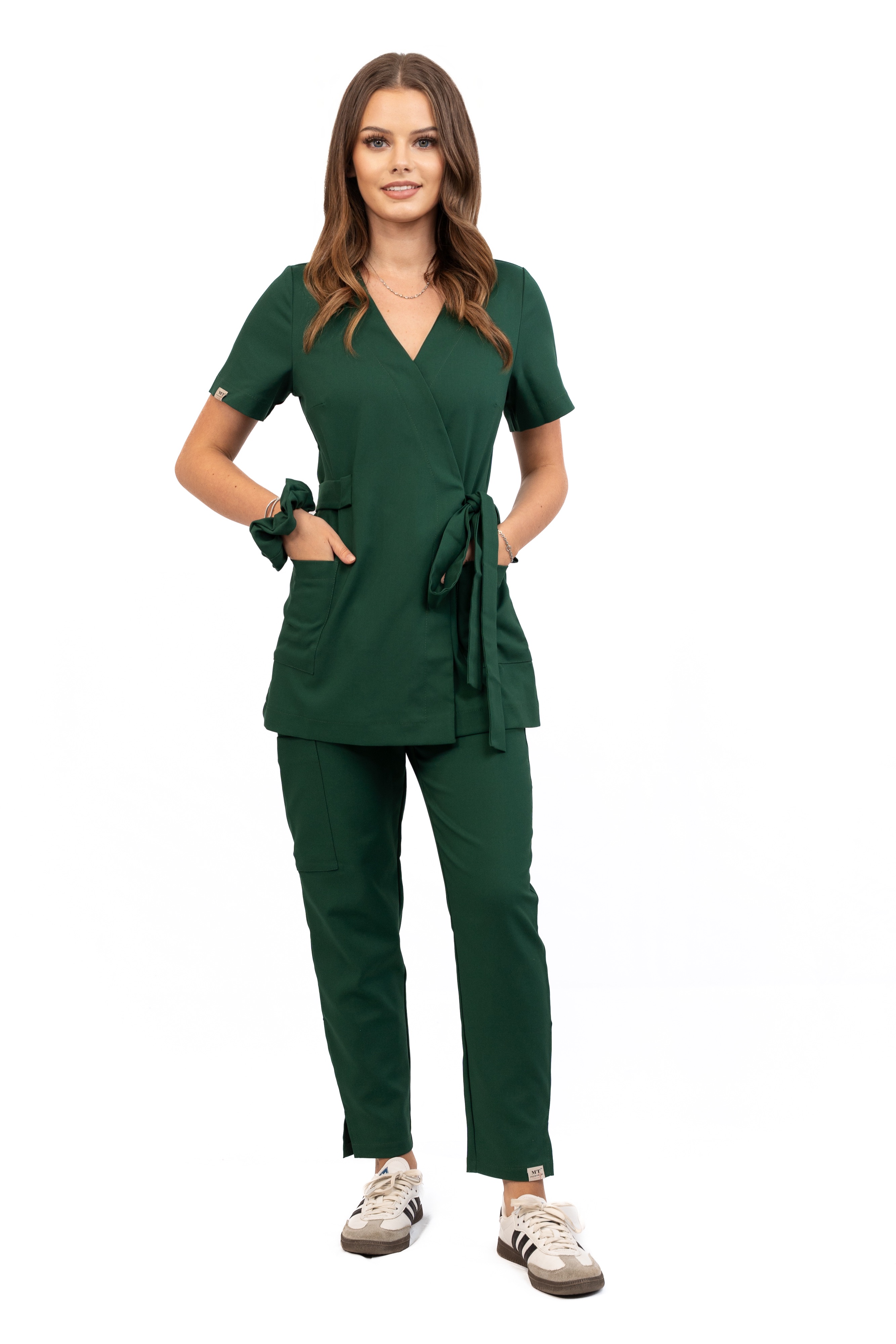 Kolekcja VELVERDA w kolorze Deep Forest to propozycja dla kobiet ceniących równowagę między elegancją a wygodą. Zwężane ku dołowi nogawki zakończone subtelnym rozporkiem wysmuklają sylwetkę i dodają lekkości każdemu krokowi.