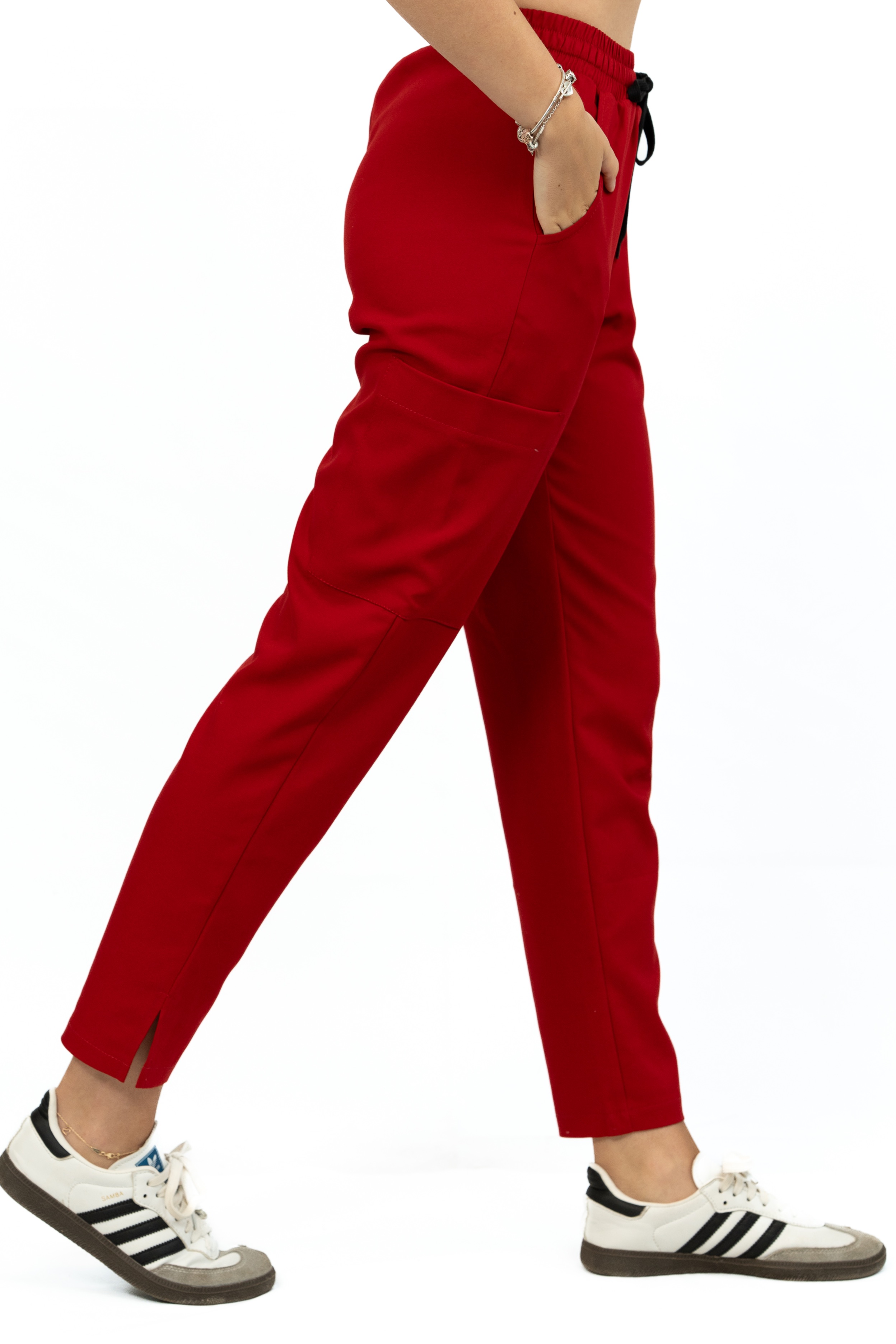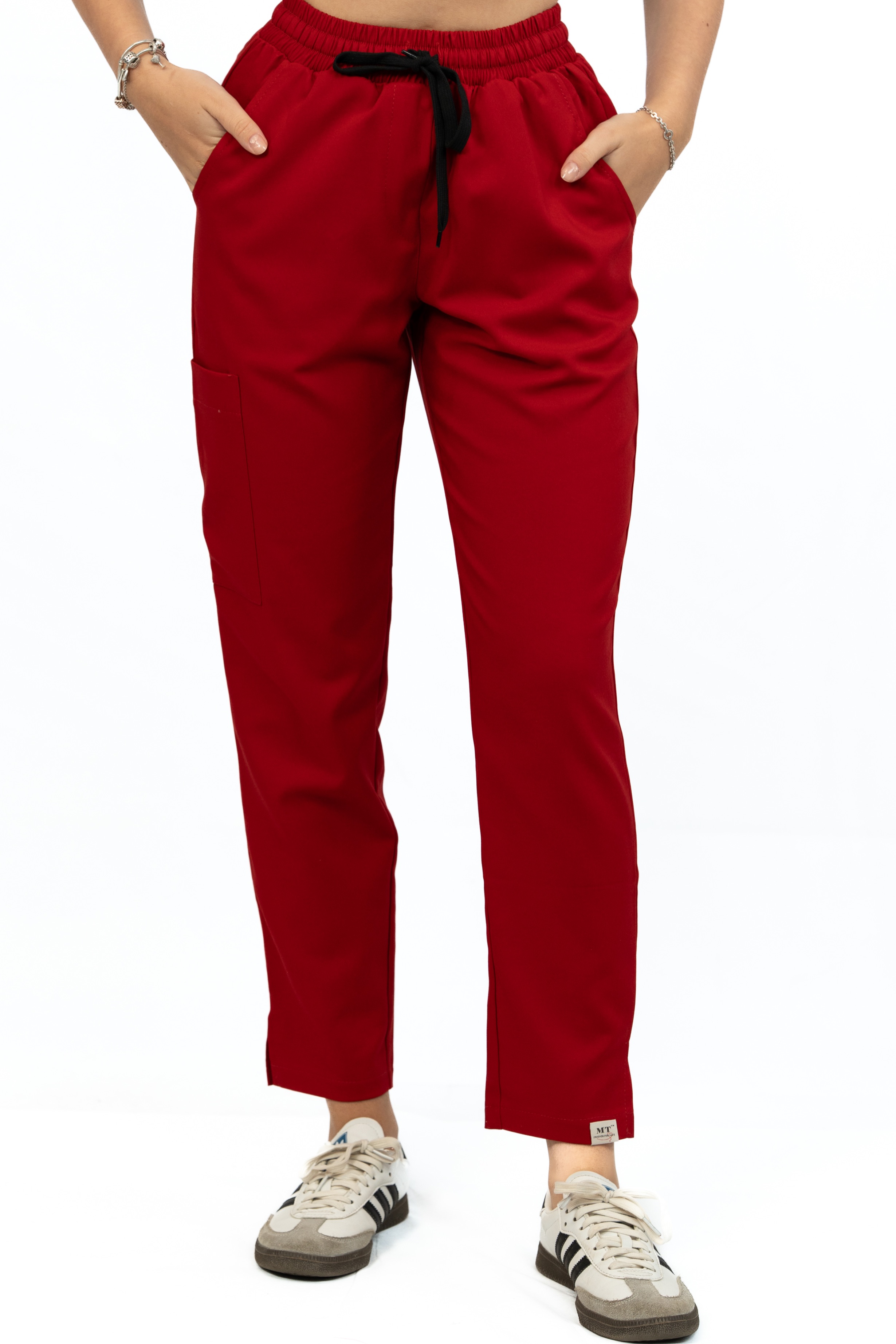 Wskazówka: spodnie posiadają elastyczny pas z gumą i sznurkiem, dzięki czemu dopasowują się do różnych sylwetek!