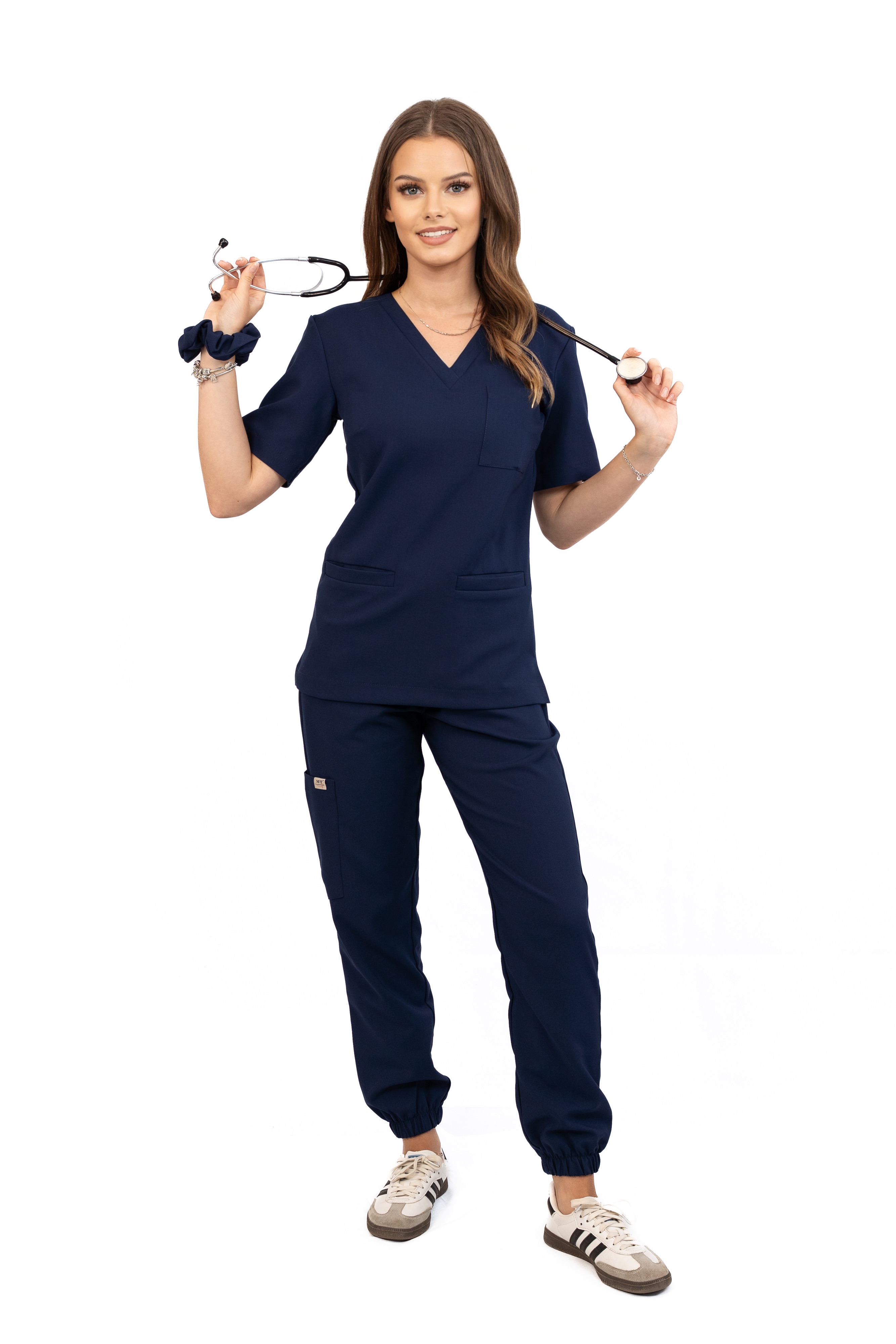 Prosta linia, praktyczne dopasowanie i komfortowy pas ze ściągaczem – wszystko, co potrzebne, by czuć się swobodnie od startu do końca dyżuru.